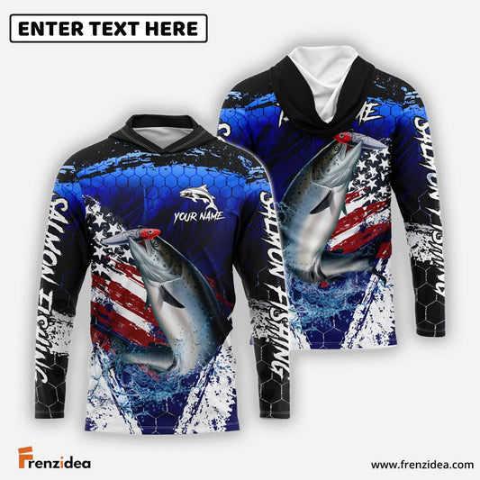Frenzidea Salmon Fishing Dark Blue Scratch American Flag scratch Sport Custom Name & Team Name 3D Shirts