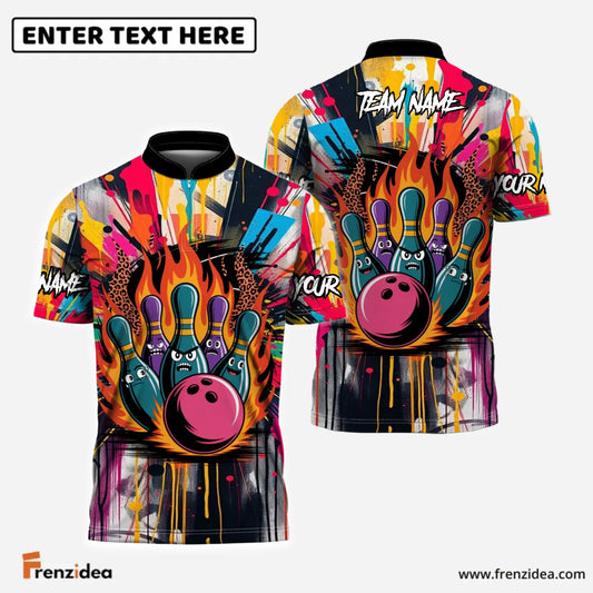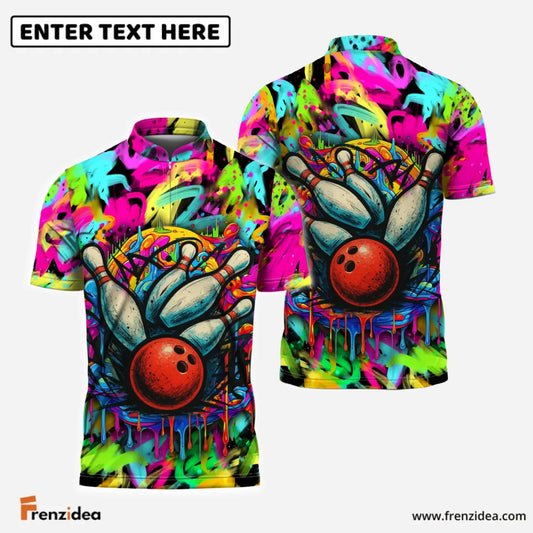 Frenzidea Street Graffiti Bowling Polo Custom Name Team Strike Shirt