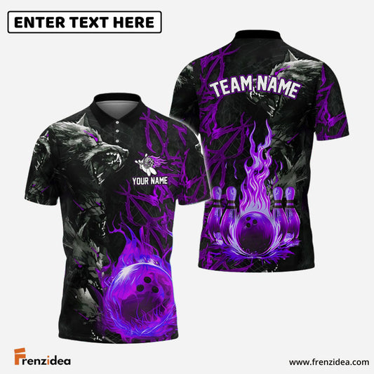 Frenzidea Bowling And Pins Flame Wolf Multicolor Customized Name 3D Shirt ( 4 Colors )
