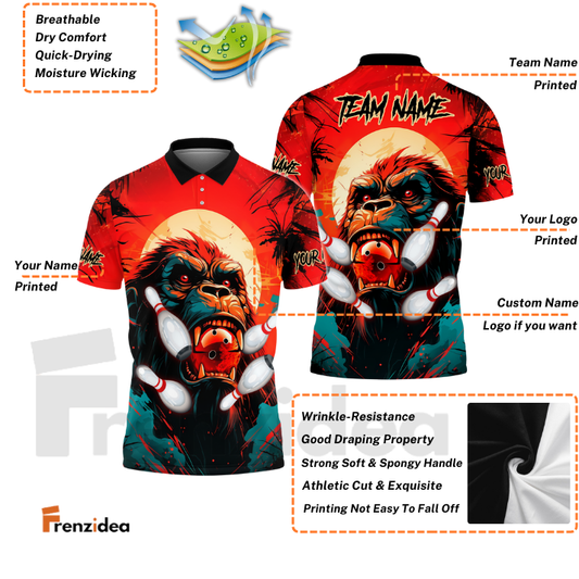 Frenzidea Bowling and Kong Pattern Customized Name, Team Name 3D Shirt