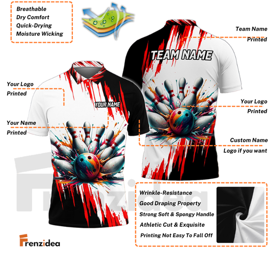 Frenzidea Bowling Graffiti Splash Paint Customized Name, Team Name 3D Shirt