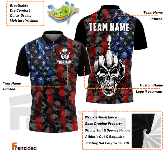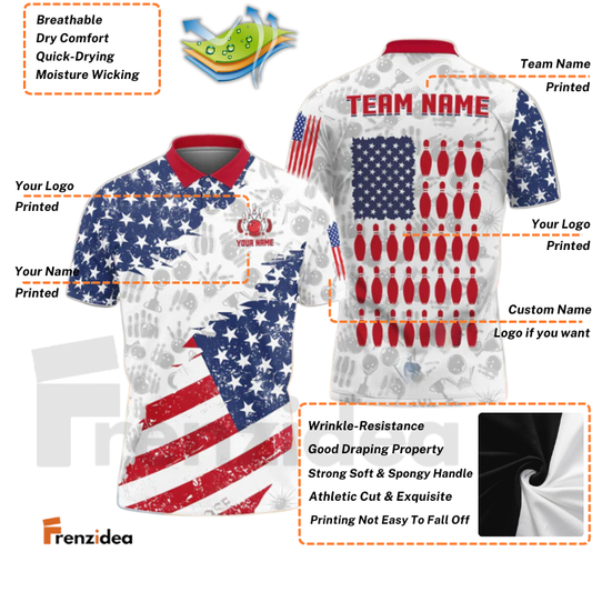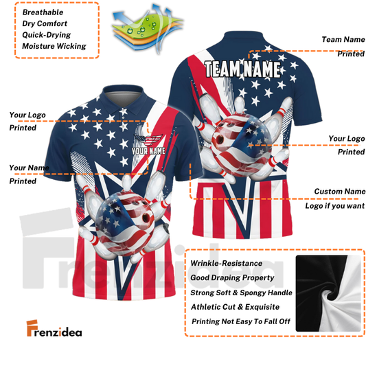 Frenzidea Bowling American Flag Patriot Customized Name, Team Name 3D Shirt