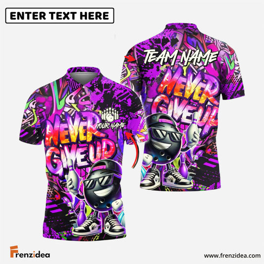 Frenzidea Bowling And Pins Funny Never Give Up Graffiti Pattern Customized Name, Team Name 3D Shirt (4 Colors)