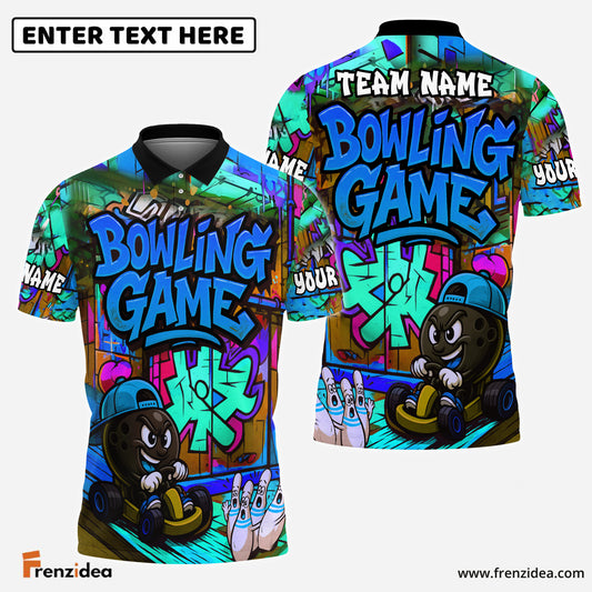 Frenzidea Bowling And Pins Graffiti Pattern Customized Name, Team Name 3D Shirt (4 Colors)