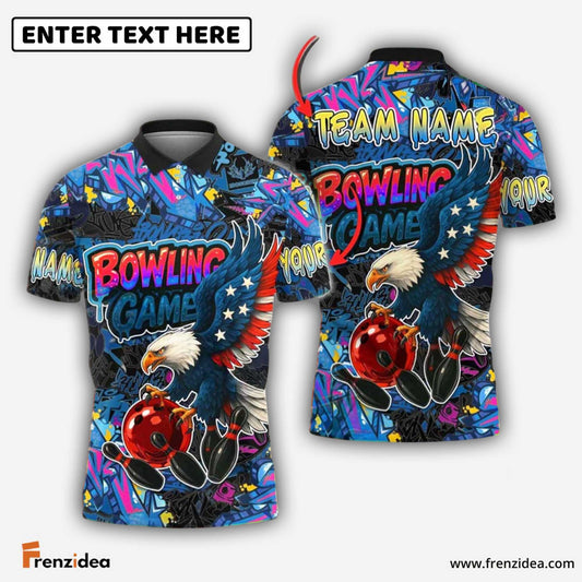 Frenzidea Bowling And Pins American Eagle Graffiti Customized Name 3D Shirt (4 Colors)