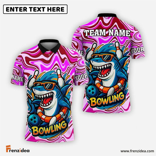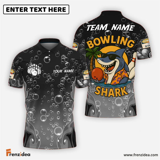Frenzidea Bowling And Pins Funny Cartoon Shark, Bubble Design Customized Name 3D Shirt (4 Colors)