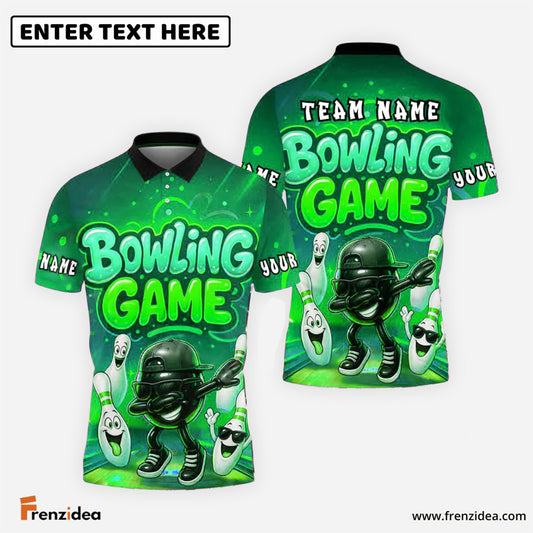 Frenzidea Bowling And Pins Funny Cartoon Vibe Dabbing Ball Customized Name, Team Name 3D Shirt (4 Colors)