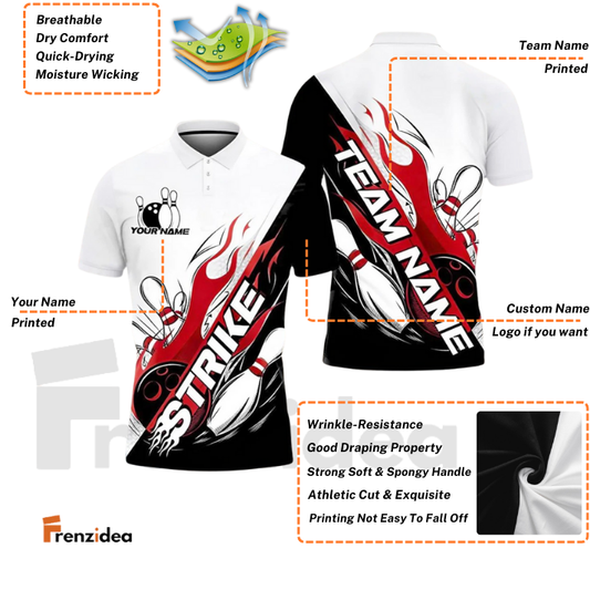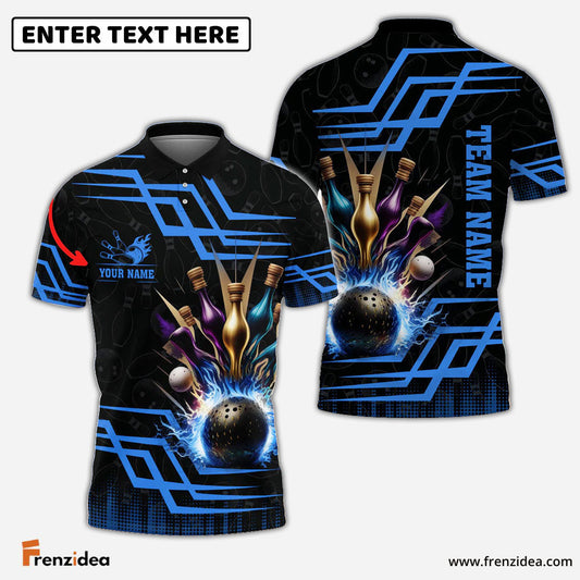 Frenzidea Bowling And Pins Flame Strike Customized Name, Team Name 3D Shirt (4 Colors)