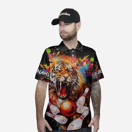 Frenzidea Bowling And Pins Fiery Tiger & Striking Customized Name, Team Name 3D Shirt (4 Colors)