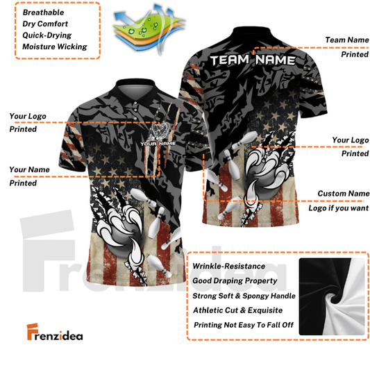 Frenzidea Bowling And Pins American Eagle Customized Name, Team Name 3D Shirt