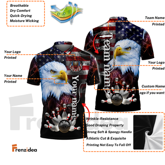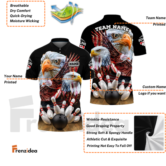 Frenzidea Bowling American Eagle Customized Name, Team Name 3D Shirt