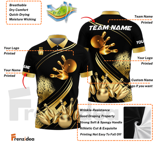 Frenzidea Bowling And Pins Ultimate Golden Customized Name 3D Shirt (4 Colors)