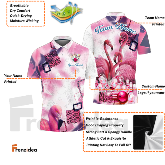 Frenzidea Bowling And Pins Flamingo Style Customized Name, Team Name 3D Shirt