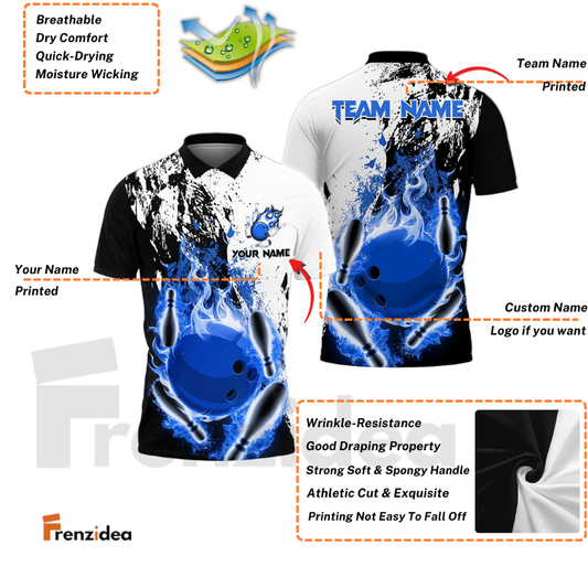 Frenzidea Bowling Fire And Ice Customized Name, Team Name 3D Shirt ( 2 Colors )