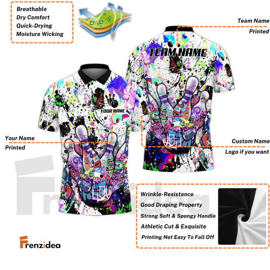 Frenzidea Bowling White Graffiti Splash Paint Personalized Shirt (2 Colors)