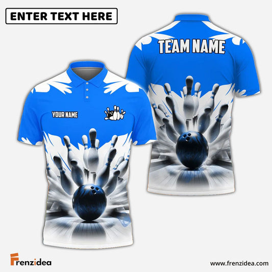 Frenzidea Bowling And Pins Royal Multicolor Option Customized Name 3D Shirt (6 Colors)