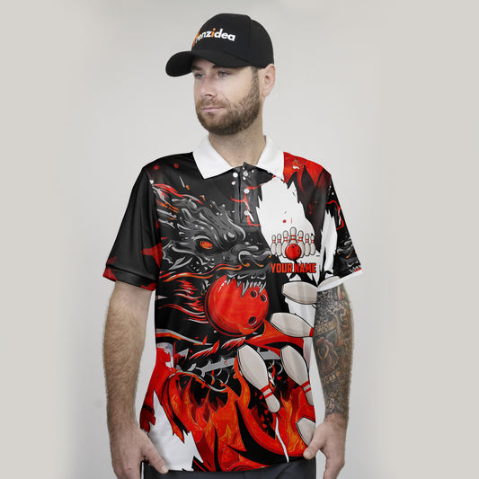 Frenzidea Bowling And Pins Dragon Flame Pattern Customized Name 3D Shirt ( 6 Colors)