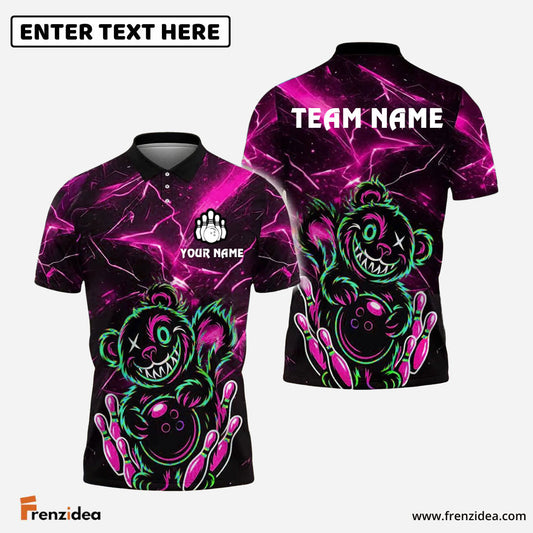 Frenzidea Bowling And Pins Crazy Bear with Ball & Pins Customized Name 3D Shirt (4 Colors)