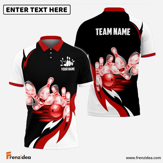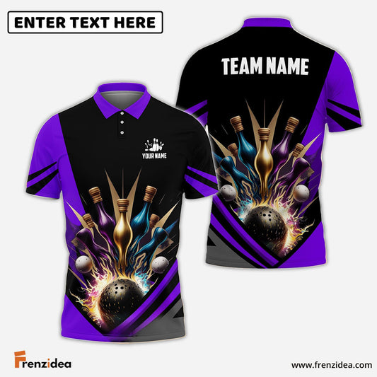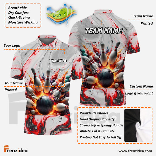 Frenzidea Bowling and Pins Broken Fire Pattern Personalized Name, Team Name 3D Shirt (4 Colors)