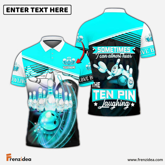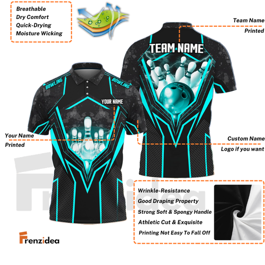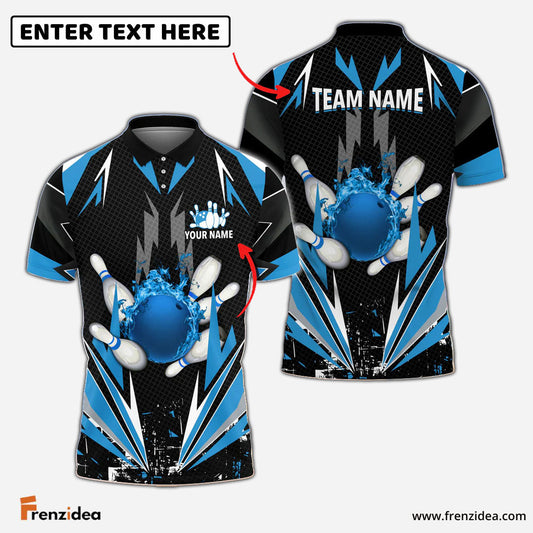 Frenzidea The Blue Bowling Ball Crashing The Pins Pattern Personalized Name 3D Shirt