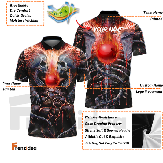 Frenzidea Bowling And Pins Flame Skull Multicolor Customized Name 3D Shirt ( 4 Colors )