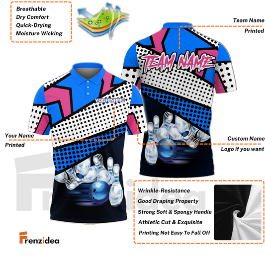 Frenzidea Cartoon Bowling And Pins Personalized Name Team Name 3D Shirt