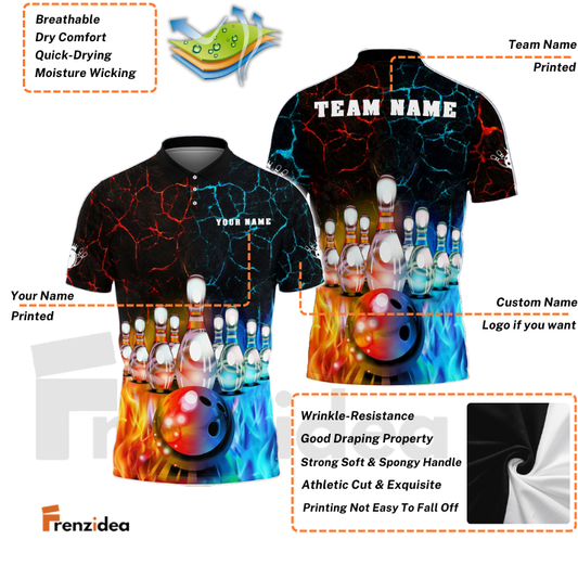 Frenzidea Fire and Water Bowling And Pins Personalized Name Team Name 3D Shirt