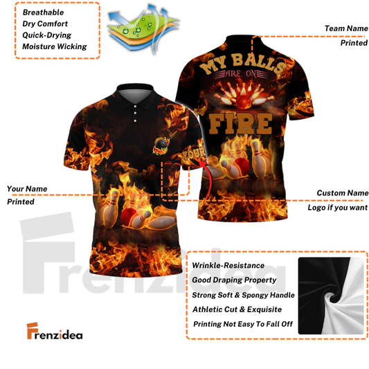 Frenzidea Flame Bowling My Balls Are On Fire Personalized 3D Shirt