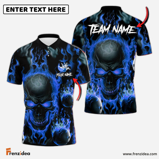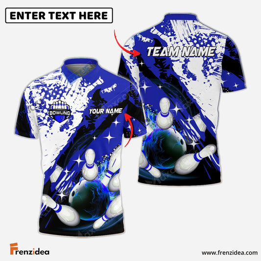 Frenzidea Blue Bowling Ball And Pins On Fire Customized Name 3D Shirt