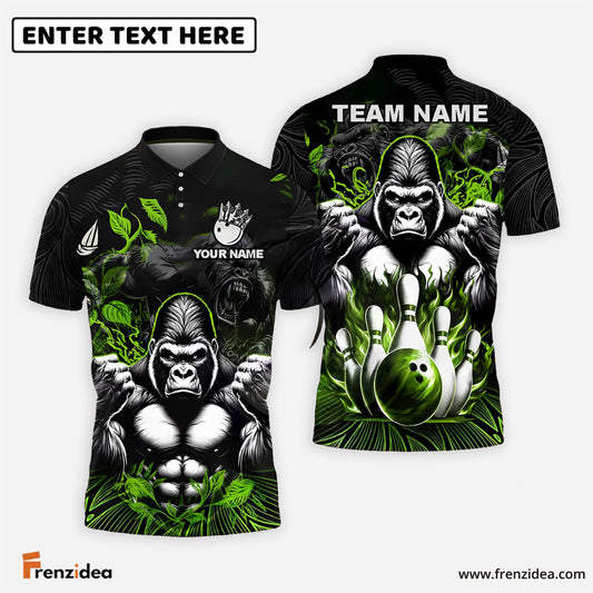 Frenzidea Bowling And Pins Gorilla Strike Customized Name, Team Name 3D Shirt (4 Colors)