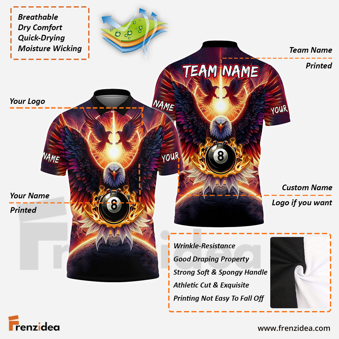 Frenzidea Billiards 8Ball Pool Hawk Pattern Customized Name 3D Shirt (