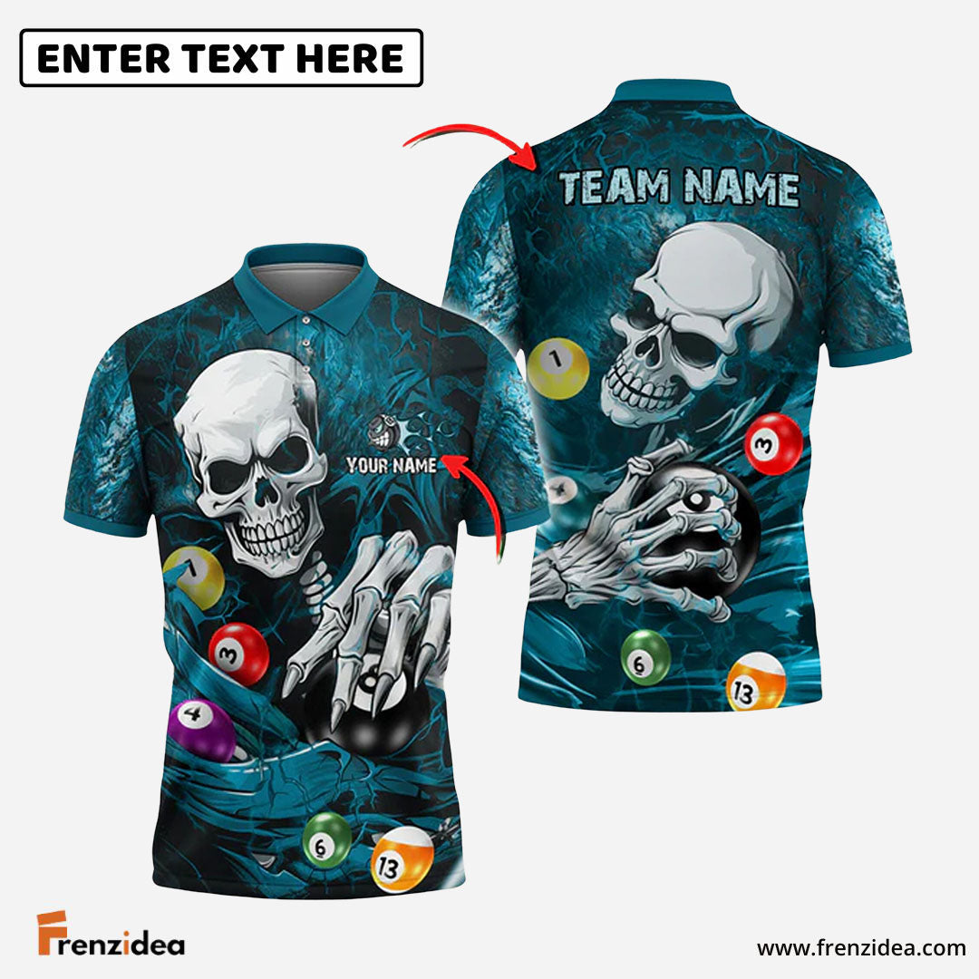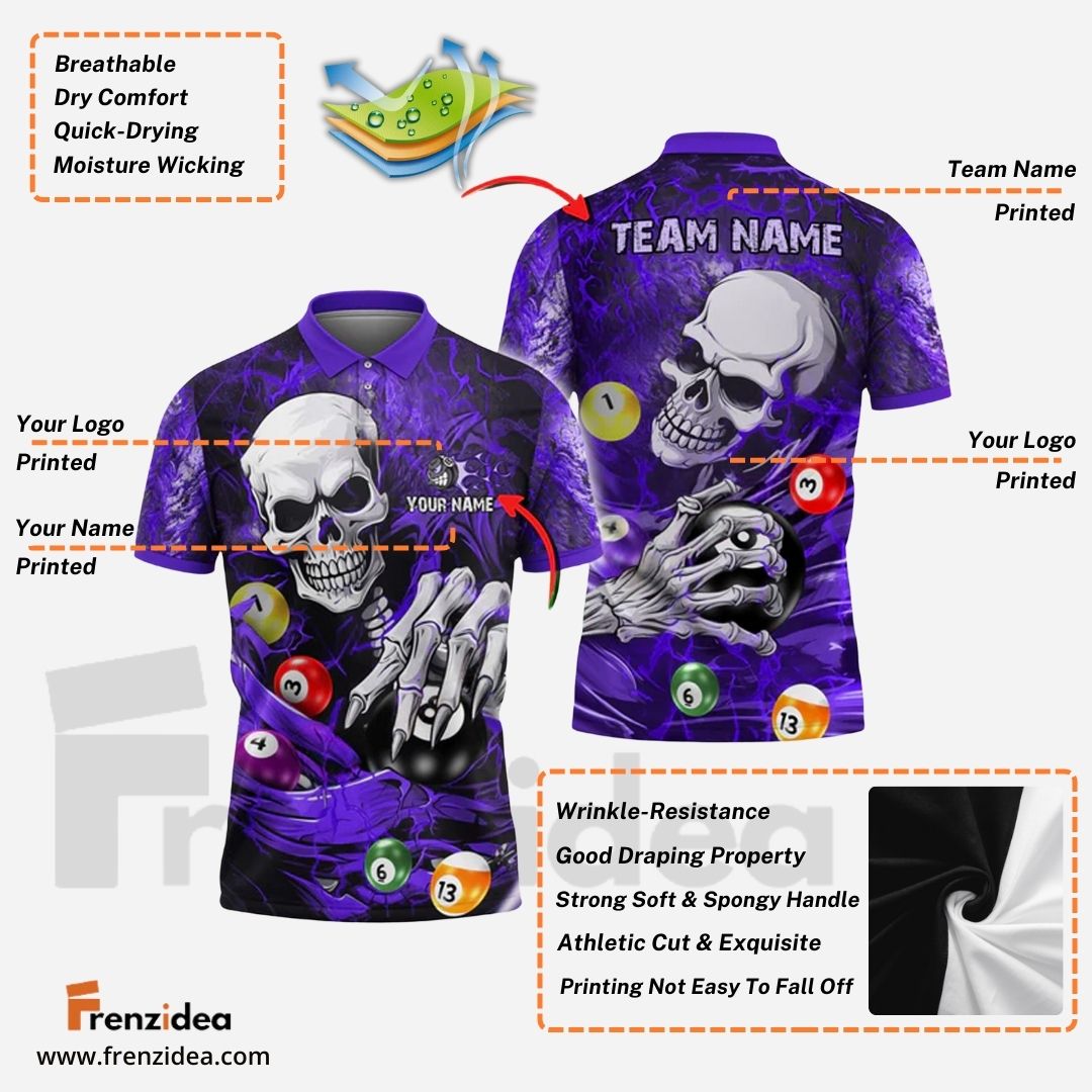 Frenzidea Billiards Ball 8 Skull Lightning Personalized Name & Team Name Shirt (4 Colors)