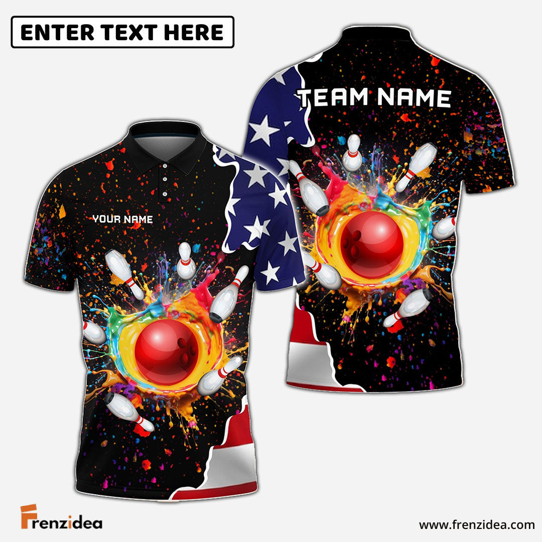 Frenzidea Bowling And Pins Colorful Paint Flag Personalized Name Team Name 3D Shirt
