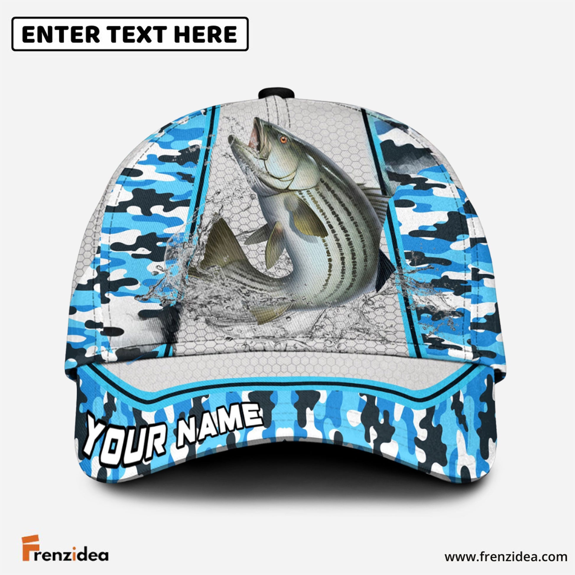 Frenzidea Personalized Striped Bass Fishing Light Blue Camo Sport Classic Cap