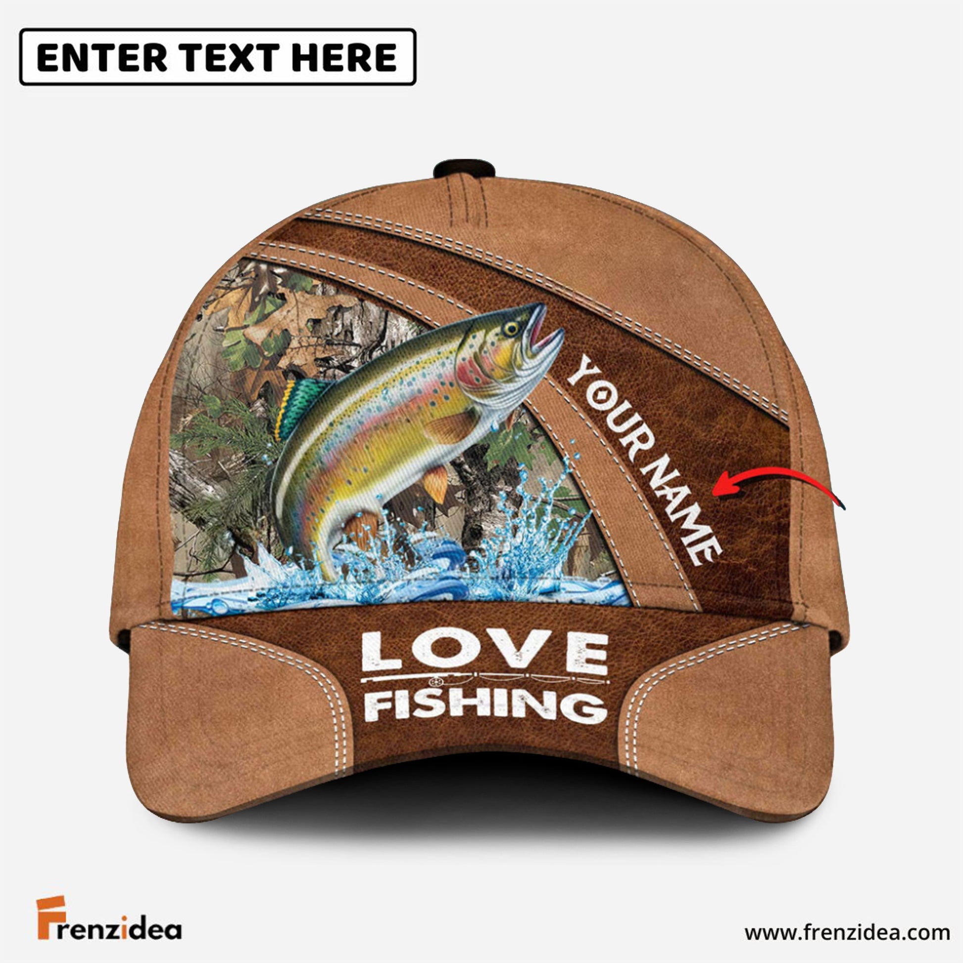 Frenzidea Personalized Trout Fishing Leather Pattern Classic 3D Cap