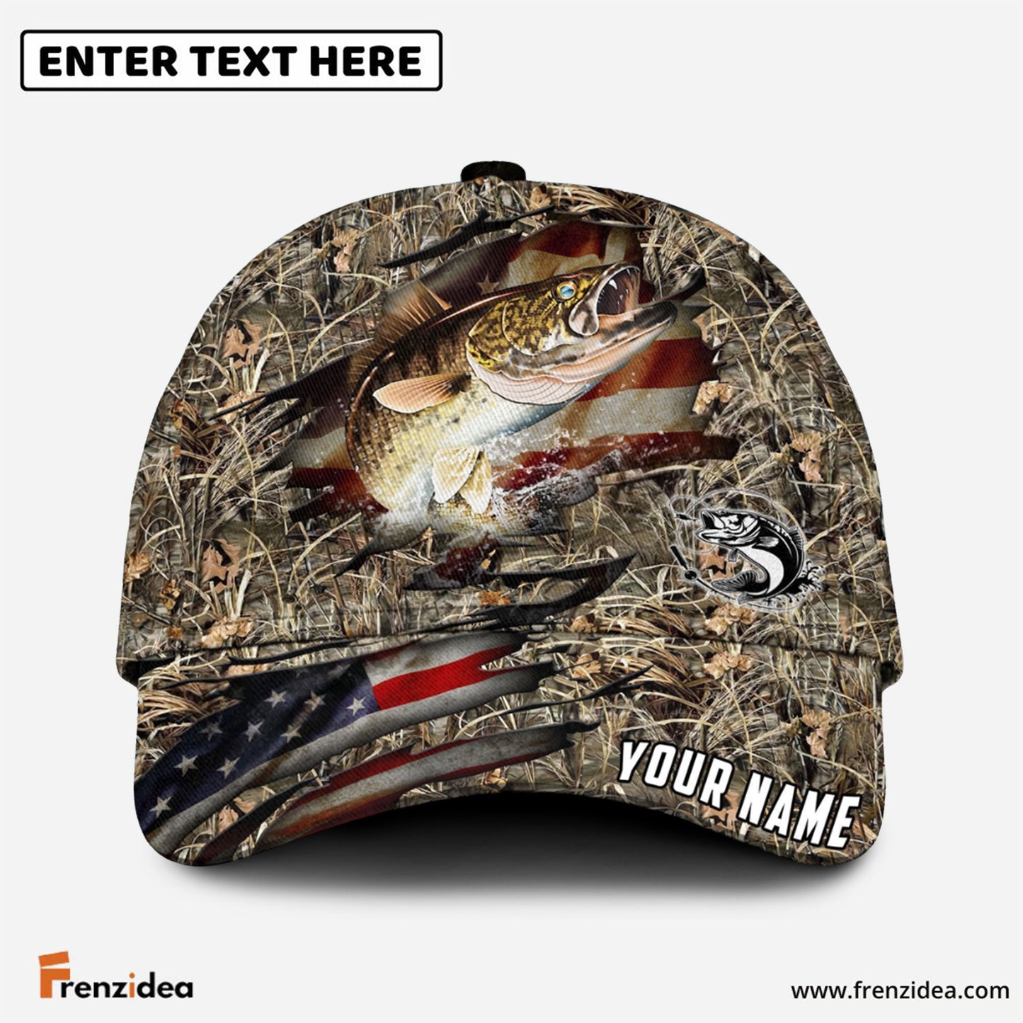 Frenzidea Personalized Walleye Premium Crack Camo Fishing Classic Cap