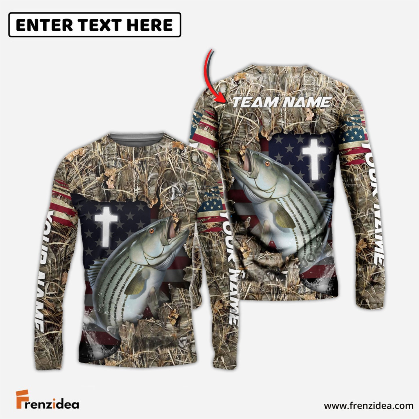 Frenzidea Striped Bass Fishing Cross Camo Custom Name & Team Name 3D Shirts