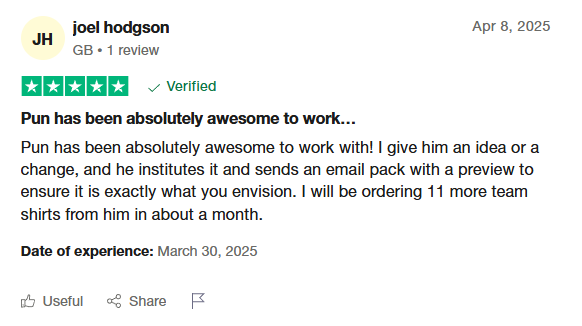 We know there's nothing quite like the feeling of holding a perfect team shirt, so we hope you'll give us a try!