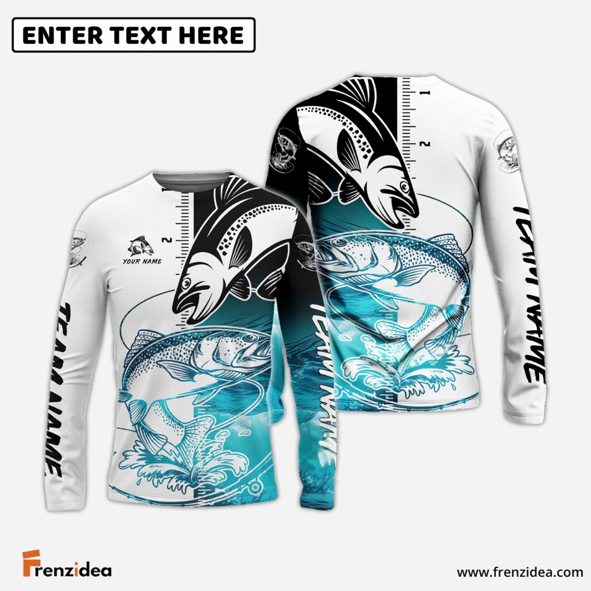 Frenzidea Trout Fishing White Blue Water Custom Name & Team Name 3D Shirts